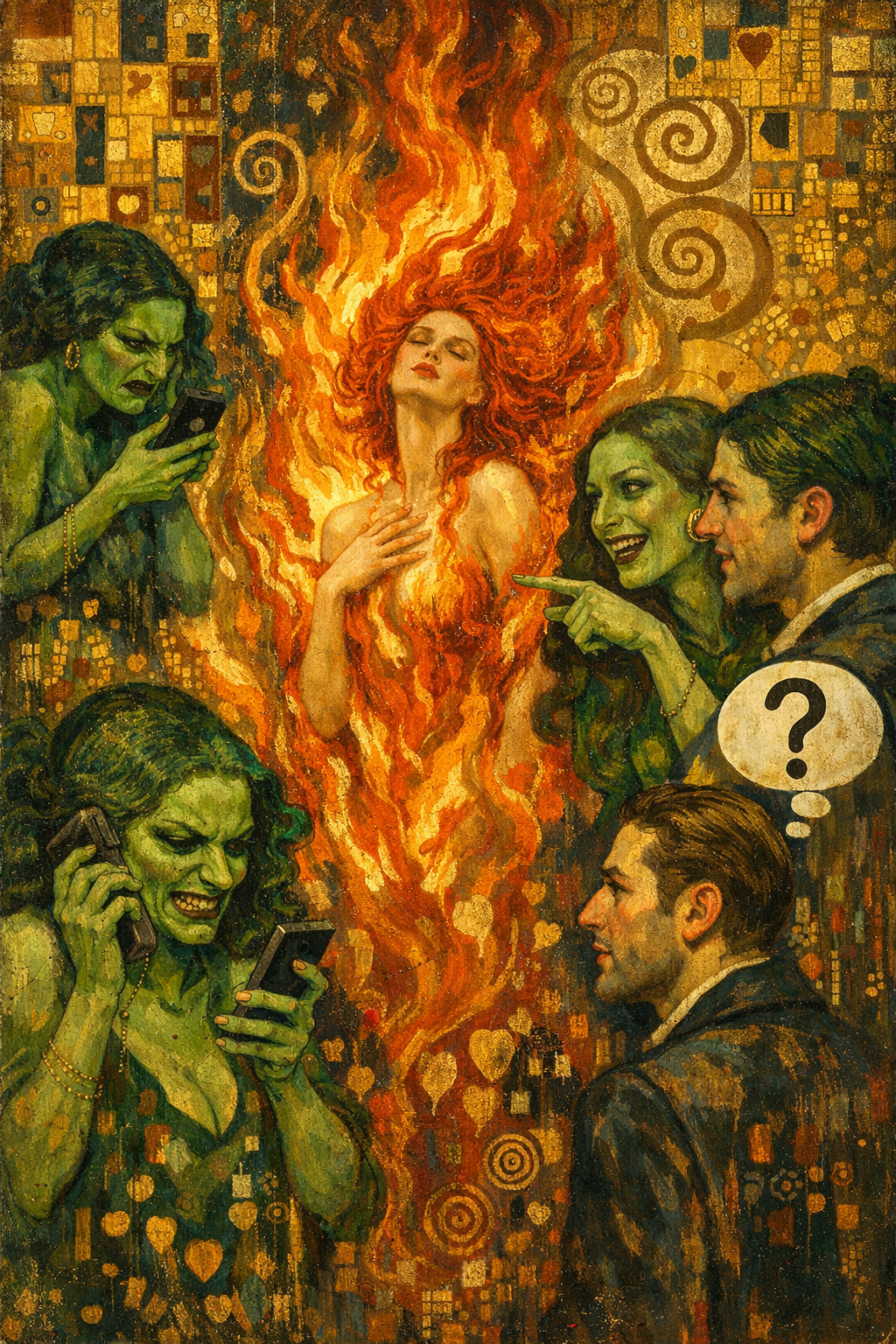 My credentials: I used to do this. Not as a cartoon villain — as a woman operating within validation economies before I developed enough interiority to exit them. I know exactly what it feels like to see another woman as threat, perform concern (or use other tactics), and seed doubt in men's minds as preemptive strike. These behaviors are fearfully common among women. I'm not guessing at their motives. I remember having them. Developing a healthy sense of who I am has been very useful, but also very isolating. When I stopped those nasty behaviors, I realized acting like that reveals insecurity — to discerning eyes anyway. It’s ugly and it feels ugly and it looks ugly.